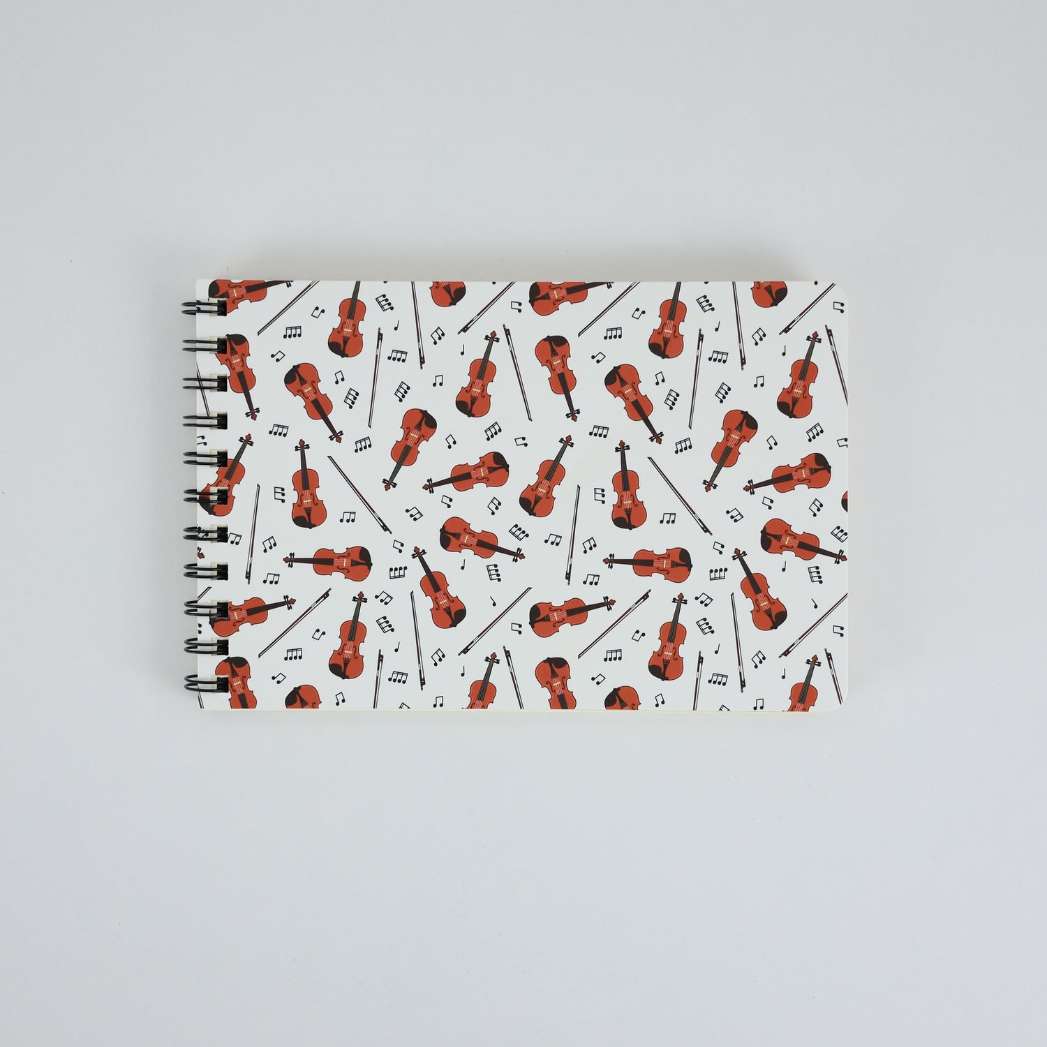 A5 Spiral Notebook White with Violins/Violas and Bows