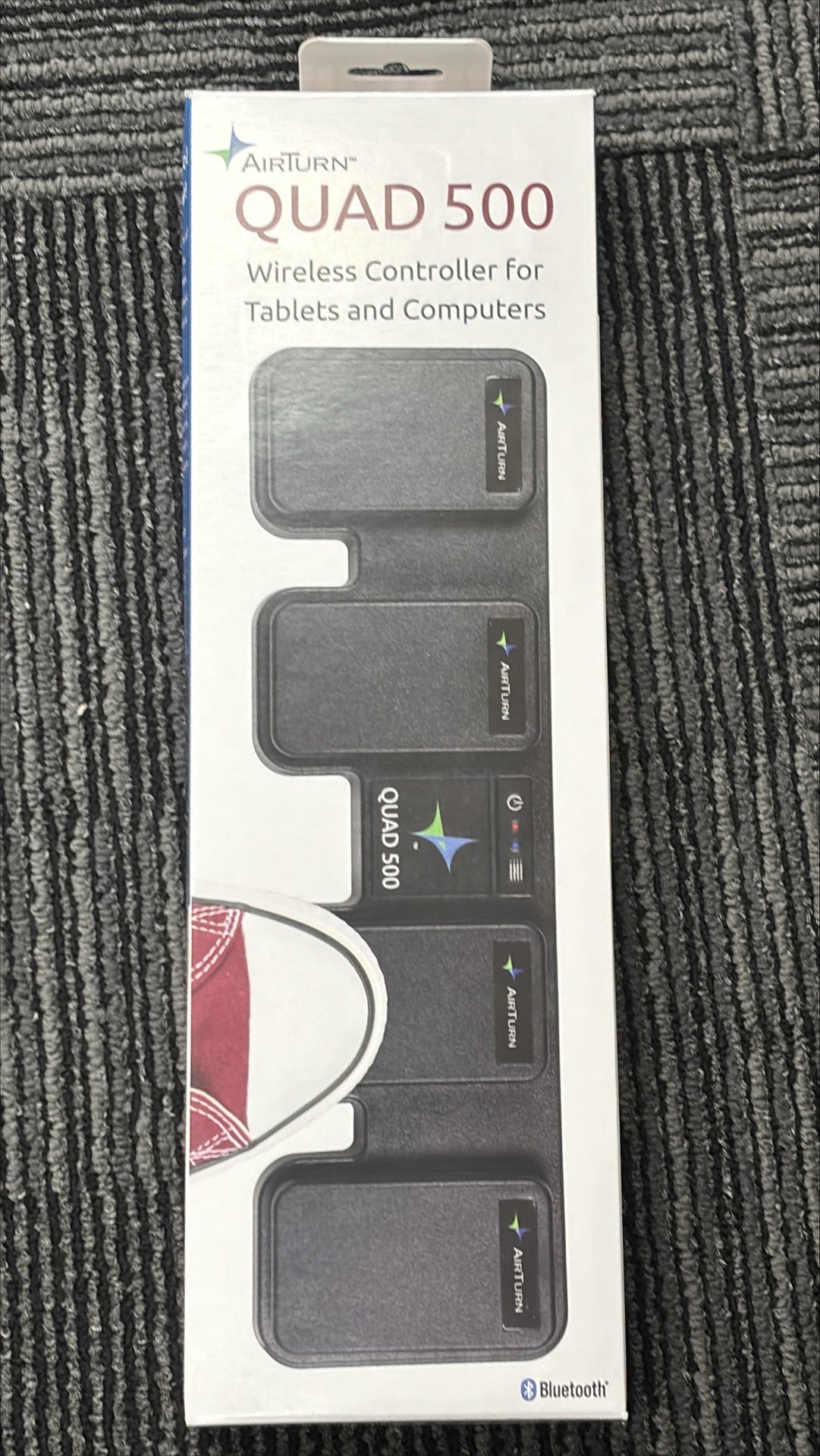 The AirTurn QUAD 500 began over a decade ago as a simple page-turner for sheet music readers. Today, it has become the best page-turner on the market due to its high-quality and long-lasting design. Featuring tactile, silent switches, the QUAD 500 is nearly indestructible. The QUAD 500 has a longer battery life, greater range, and faster connectivity than its competitors. Plus, it is completely customizable for keystrokes, shortcuts, switching types, MIDI, and so much more!Depending on what app or software you choose, you can do more than turn pages. You can scroll lyrics and tabs, start and stop backtracks, metronomes, and much more.The QUAD 500 is the professional choice for taking control of your tablet or computer.
