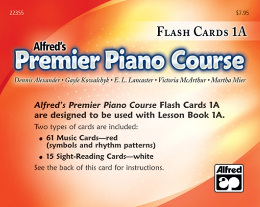 Flash Cards correlate with the Lesson Book and include two types of cards: Music Cards and Sight-Reading Cards. Music Cards include symbols, terms, note identification, rhythm patterns and keyboard layout. Sight-Reading Cards include staff-reading patterns based on the repertoire.