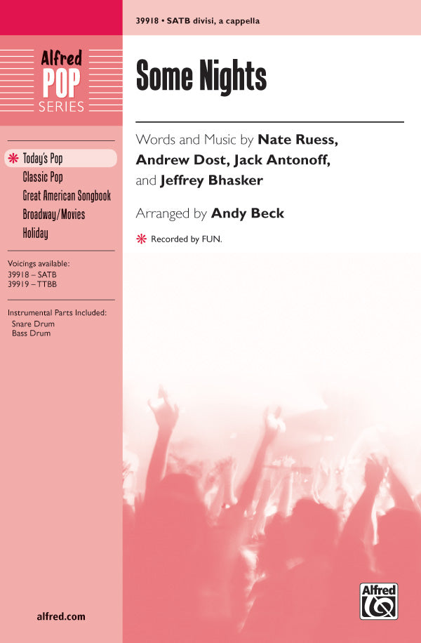 This powerful anthem by the Grammy-award winning pop group FUN. became the band's second top-ten hit on the Billboard Hot 100, and has been featured on Glee. The intense lyrics explore the meaning of life, using war as a metaphor for the struggle between good and evil. Creatively arranged, pairing a strong a cappella choir with martial snare and bass drums.