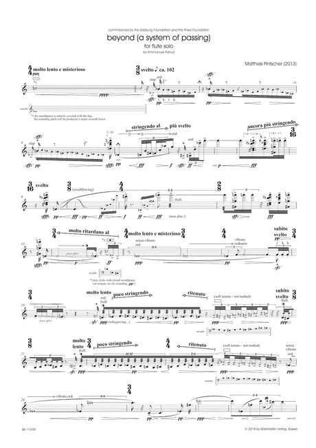 Beyond (a system of passing) for Flute Solo - Pintscher Matthias Barenreiter BA11049