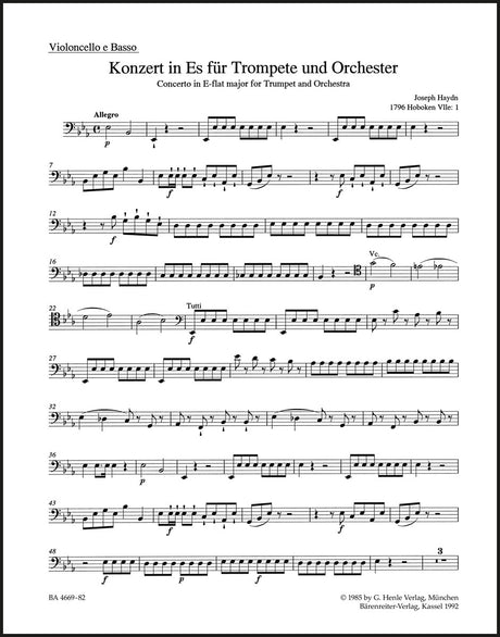 Concerto for Trumpet and Orchestra in Eb Major - Cello/Double Bass - Barenreiter BA04669-82