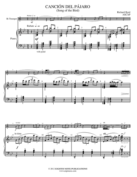Cancion del Pajaro (Song of Bird) -Trumpet/Piano - Byrd