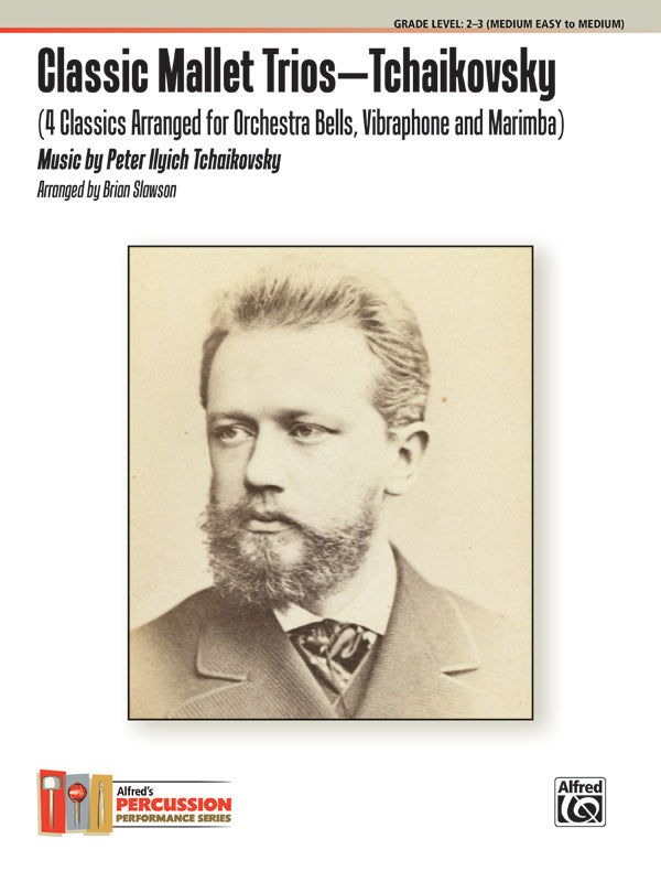 Classic Mallet Trios---Tchaikovsky features four classics arranged for orchestra bells, vibraphone, and marimba. These selections work splendidly as individual pieces or in a four-movement capacity, reflecting the popular sonata form commonly used in symphonic works of the 18th and 19th centuries. In addition to providing inside access to valuable repertoire from one of the great master composers, this "mini-symphony" reveals the importance of key relationships, tempo relationships, and contrasting dynamics. "Dance of the Sugarplum Fairy," "March Slav," "Sleeping Beauty Waltz," and the irrepressible "1812 Overture" comprise this exciting Classic Mallet Trios collection, wonderfully suited for solo and ensemble applications and bound to thrill audiences in concert settings.