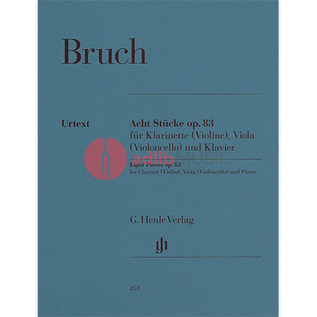 Bruch - 8 Pieces Op83 - Clarinet or Violin/Viola or Cello/Piano Trio Parts Henle HN853