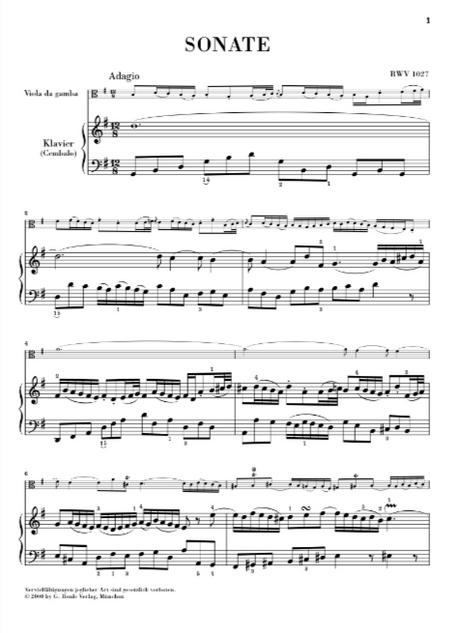 Bach - 3 Sonatas BWV1027-1029 - Viola or Cello/Piano Accompaniment Henle HN676