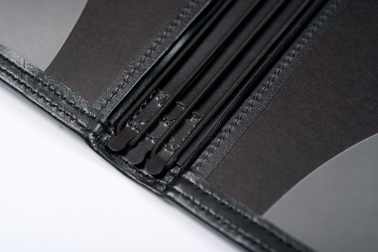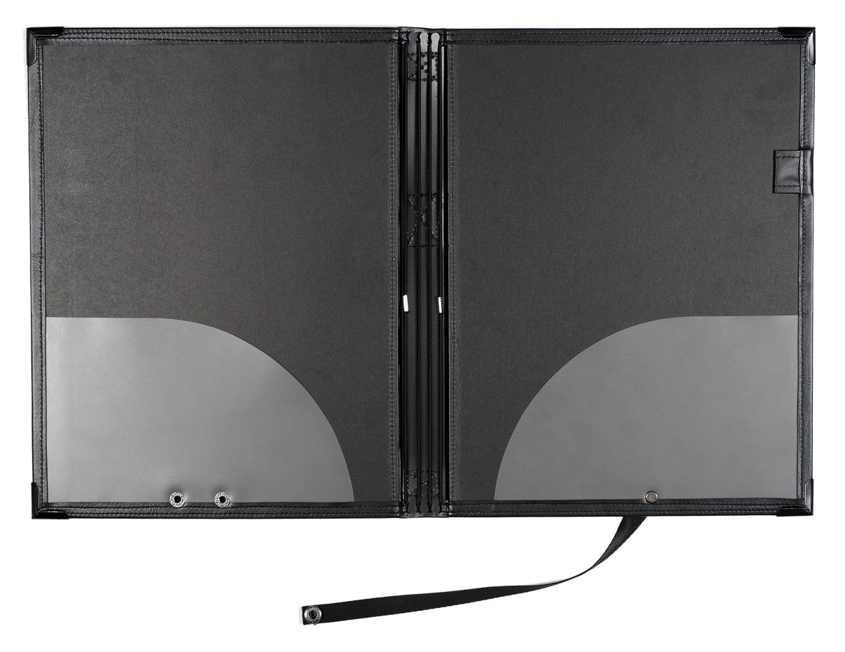 - Spine with 4 elastic cords to display 4 booklets, up to A4 size.