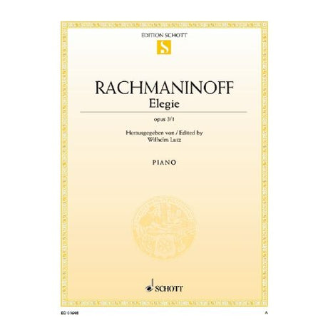 - Sold outSchott Rachmaninoff - Elegie Op3/1 - Piano Solo edited by Schuengeler Schott ED01648 $15.95Unit price /Unavailable
