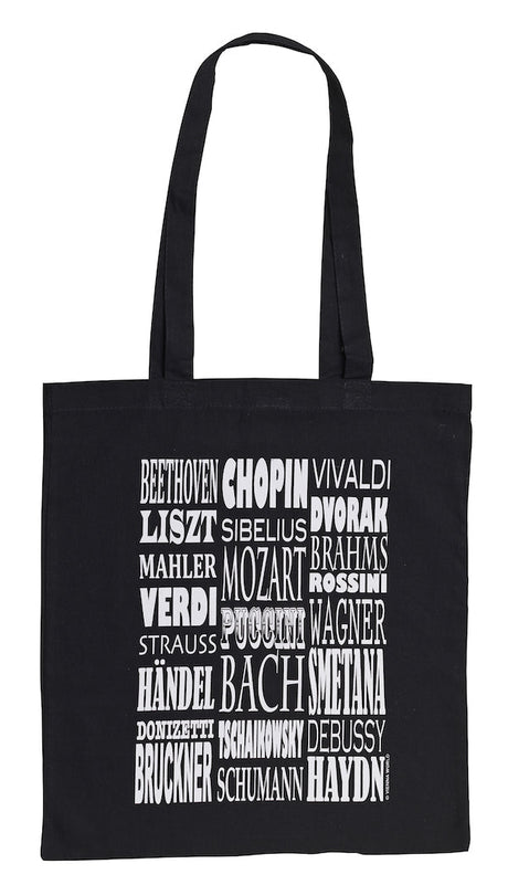 Sheet Music Bag Black with Long Handles and White Composers Names