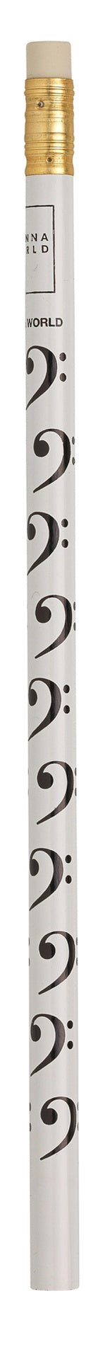 Music Pencil White with Black Bass Clefs and Eraser