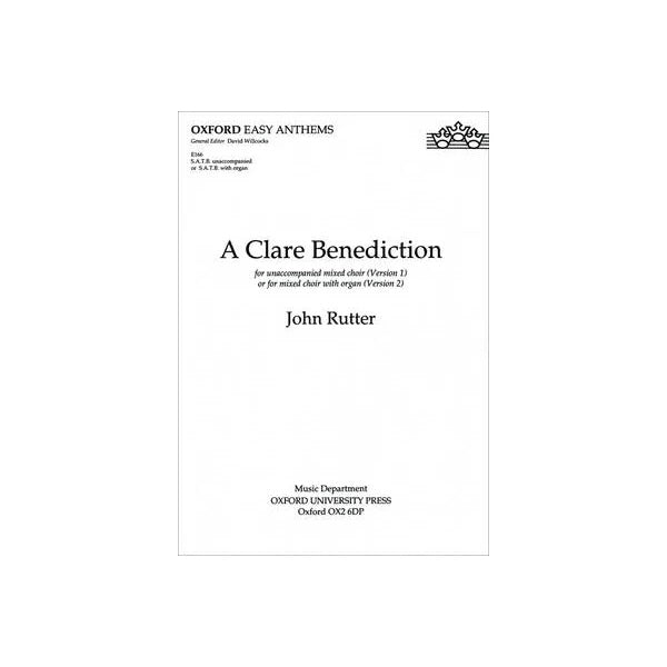 An easy anthem with words and music by the composer. There are four different versions of the vocal parts - unison (or two-part) with keyboard, upper voices with keyboard, SA and Men with piano, or SATB unaccompanied or with keyboard. An orchestral accompaniment compatible with the SATB version , SAMen version, and the unison version (although the orchestral parts are a semitone higher for the latter two) is available on hire. Also available in John Rutter Anthems.