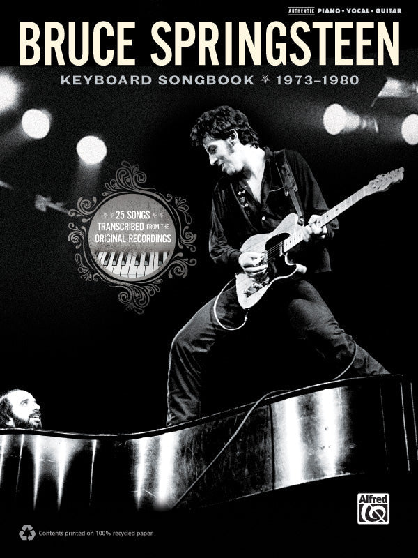 For pianists who love Bruce Springsteen, this sheet music collection is a dream come true. Rich with piano, Hammond organ, glockenspiel, and more, Springsteen's early albums contain some of the most memorable keyboard tracks in rock 'n' roll history. Now, for the first time, keyboard parts for 25 songs from his legendary 1973--1980 era have been notated with unprecedented accuracy and gathered in this collectible volume. Note-for-note keyboard transcriptions are woven into arrangements that make each song playable on piano from start to finish. Complete vocal melodies and lyrics are included, along with chord grids for guitar. The 25 selections in this volume were chosen for their playability on piano and their popularity among songs Springsteen recorded during his exciting '70s era---a time of boundless creativity and energy that stands out amid the many highlights of his unparalleled career. Titles: Ain't Good Enough for You * Backstreets * Badlands * Because the Night * Born to Run * Darkness on the Edge of Town * Growin' Up * Hungry Heart * It's Hard to Be a Saint in the City * Jungleland * Kitty's Back * Meeting Across the River * New York City Serenade * Out in the Street * Point Blank * The Promise * The Promised Land * Prove It All Night * Racing in the Street * The River * She's the One * Spirit in the Night * Streets of Fire * Tenth Avenue Freeze-Out * Thunder Road.